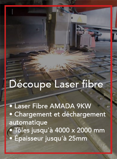 Laser Fibre AMADA 9KW • Chargement et déchargement automatique • Tôles jusqu'à 4000 x 2000 mm • Épaisseur jusqu'à 25mm