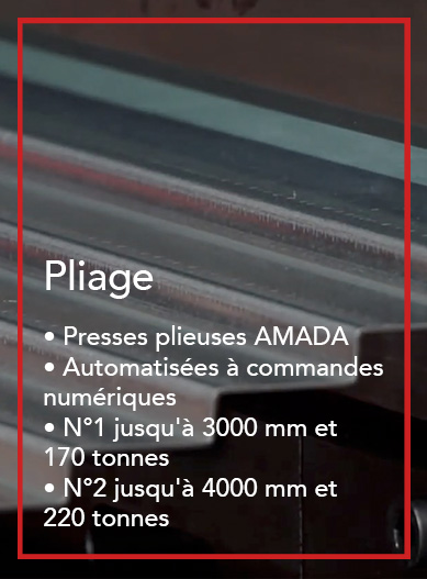 Presses plieuses AMADA • Automatisées à commandes numériques • N°1 jusqu'à 3000 mm et 170 tonnes • N°2 jusqu'à 4000 mm et 220 tonnes