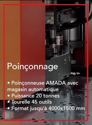 Poinçonneuse AMADA avec magasin automatique • Puissance 20 tonnes • Tourelle 45 outils • Format jusqu'à 4000 x 1500 mm